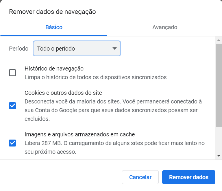 Limpar o cache e os cookies do GOOGLE CHROME